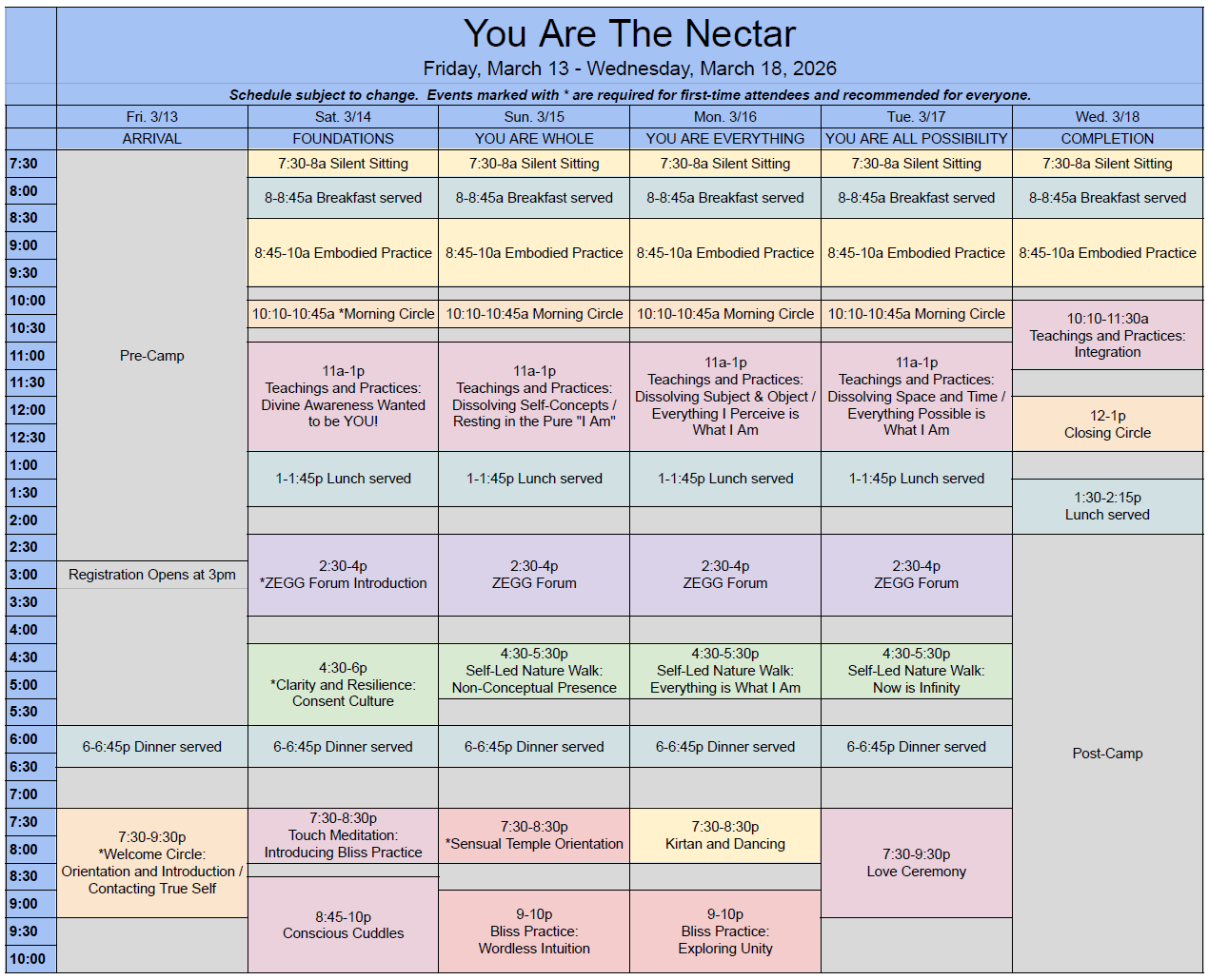 Schedule for Recognizing Your Inherent Splendor IV Schedule subject to change.Contact us at info@cfnc.us for a screen-readable schedule.Read program descriptions here! See our presenters here!